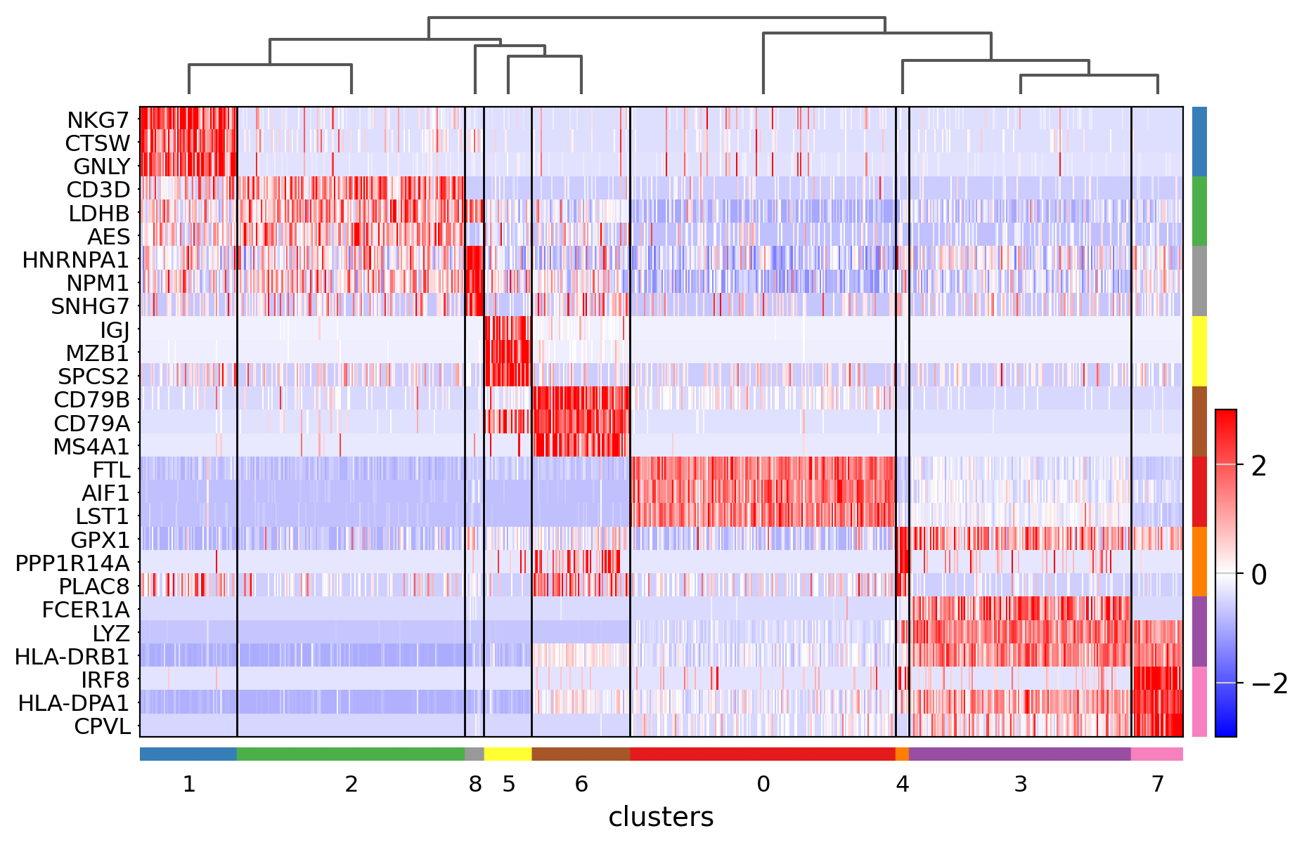 sc.tl.rank_genes_groups(pbmc, groupby="clusters", method="wilcoxon")